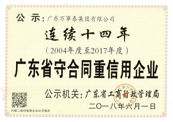 「喜訊」萬事泰連續(xù)十四年榮獲“廣東省守合同重信用企業(yè)”稱號推薦