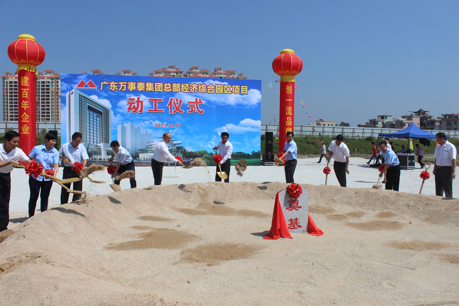 10月17日上午,云浮市政協(xié)主席黃達(dá)輝、市人大常務(wù)副主任黃伙有、新興縣委書記人大常務(wù)主任葉銳、縣委副書記縣長唐誼、縣政協(xié)主席梁國華、縣政協(xié)黨組書記區(qū)耀啟、縣委副書記陳就慶、縣人大常務(wù)副主任梁錦釗等新興縣政府四套領(lǐng)導(dǎo)班子約70余人出席了萬事泰集團(tuán)總部經(jīng)濟(jì)綜合園區(qū)項(xiàng)目動(dòng)工儀式,集團(tuán)管理人員代表近200人參加了此次活動(dòng)。