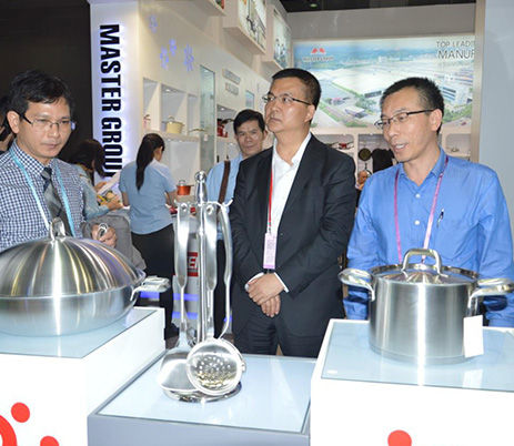 本屆交易會推出的“MASTER AI COOKING”(智能廚具)受到各國客商的晴睞。云浮市副市長胡海運(yùn)在百忙中專程到集團(tuán)展位視察和了解集團(tuán)在廣交會的展覽情況。并鼓勵集團(tuán)領(lǐng)導(dǎo)必須要搞科技創(chuàng)新、產(chǎn)品轉(zhuǎn)型升級,打造自己的品牌戰(zhàn)略。國家輕工商會會長王忠奇也親臨集團(tuán)展位視察,集團(tuán)董事長梁桂泉、副總裁劉炳耀接待陪同他們參觀了展位新產(chǎn)品。