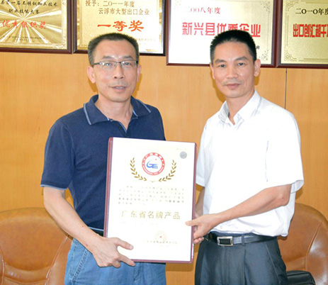 7月31日,新興縣質(zhì)監(jiān)局局長黎華楷等領(lǐng)導(dǎo)來到萬事泰一樓會(huì)議室,為萬事泰頒發(fā)“廣東省名牌產(chǎn)品”證書,并與萬事泰常務(wù)副總裁劉炳耀、行政部經(jīng)理陳永錦進(jìn)行了座談會(huì)。座談會(huì),雙方針對(duì)創(chuàng)建名牌產(chǎn)品等問題進(jìn)行了探討。