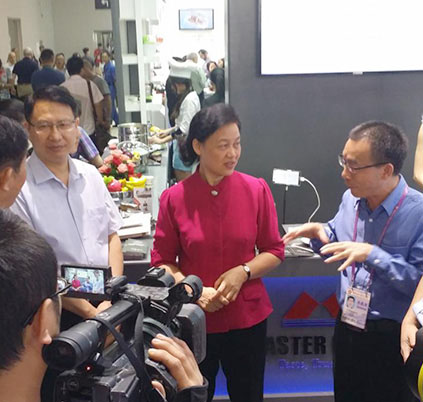 10 月24 日,廣東省副省長(zhǎng)招玉芳在廣交會(huì)副主任、外貿(mào)中心副主任王潤(rùn)生陪同下視察了第116 屆廣交會(huì),招玉芳一行來(lái)到萬(wàn)事泰集團(tuán)展位視察,常務(wù)副總裁劉炳耀接待了他們。劉副總裁向招副省長(zhǎng)匯報(bào)企業(yè)的轉(zhuǎn)型升級(jí)、創(chuàng)新發(fā)展、市場(chǎng)開(kāi)拓以及在廣交會(huì)的成交等情況。招副省長(zhǎng)表示,企業(yè)只有創(chuàng)新才有生命力,企業(yè)應(yīng)加緊通過(guò)品牌建設(shè)、技術(shù)改造、人才培養(yǎng)等方式,轉(zhuǎn)型升級(jí),提高核心競(jìng)爭(zhēng)力。萬(wàn)事泰集團(tuán)一直致力于生產(chǎn)出口高端智能廚具,產(chǎn)品遠(yuǎn)銷德國(guó),廣受好評(píng)。