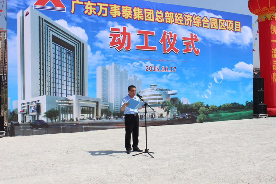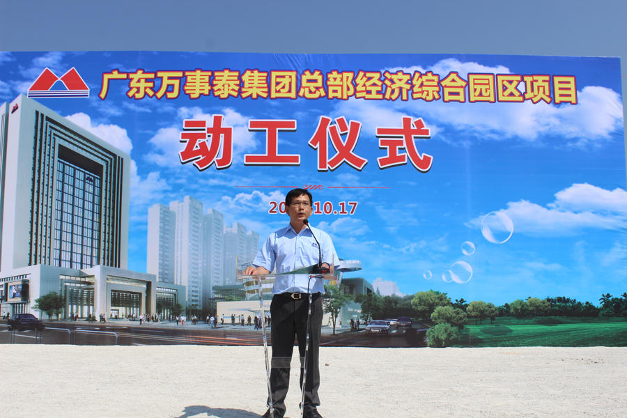 10月17日上午,云浮市政協(xié)主席黃達輝、市人大常委會常務副主任黃伙有、新興縣委書記、人大常委會主任葉銳、縣委副書記、縣長唐誼、縣政協(xié)主席梁國華、縣政協(xié)黨組書記區(qū)耀啟、縣委副書記陳就慶、縣人大常委會常務務副主任梁錦釗等縣四套班子領導約70余人出席了萬事泰集團總部經(jīng)濟綜合園區(qū)項目動工儀式,集團管理人員代表近200人參加了此次活動。