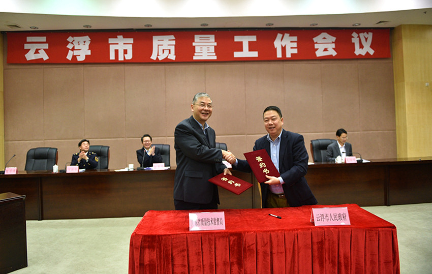(會上,廣東省質監(jiān)局與云浮市政府就質量監(jiān)管簽署合作協(xié)議,云浮市2016年質量工作開展將再上新臺階。)