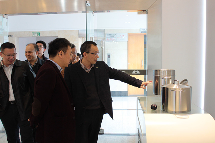 劉煒副廳長一行先后參觀了萬事泰集團總部大樓、技術(shù)中心、生產(chǎn)事業(yè)部、檢測中心、智能廚房展廳,對集團先進的自動化生產(chǎn)線,高科技的智能餐廚具產(chǎn)品進行深入了解,高度贊揚集團在“產(chǎn)學研”以及科技創(chuàng)新領(lǐng)域的實踐發(fā)展。