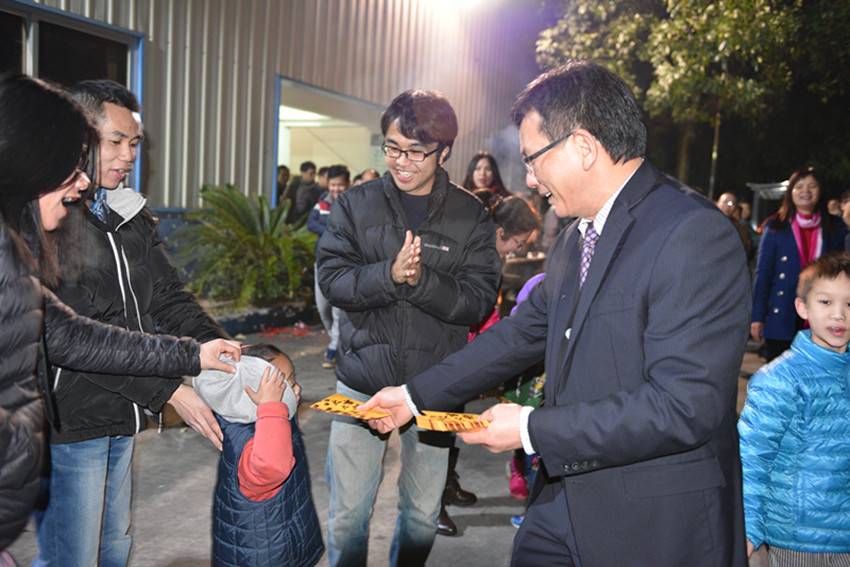 董事長梁桂泉為小朋友派發(fā)新年紅包