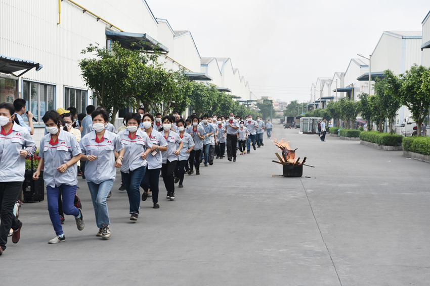當(dāng)消防警鈴響起,演練全體人員在協(xié)調(diào)組的指揮下,疏散組馬上組織人員,迅速進入緊急疏散狀態(tài):在疏散組的帶領(lǐng)下,員工用口罩、濕毛巾、衣服等捂住口鼻有序撤出車間,按照逃生演練方案設(shè)定的逃生路線,迅速有序地從車間里撤離到指定地點。整個應(yīng)急演練活動規(guī)范、有序、安全、高效,員工認(rèn)真對待活動,表現(xiàn)出臨危不亂,組織有序,逃生時沒有爭先恐后發(fā)生擁擠、踩踏和碰傷的事故。