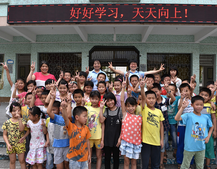 萬事泰集團員工代表將慰問金交付給王香地小學師生手中,并與大家親切的合影留念。