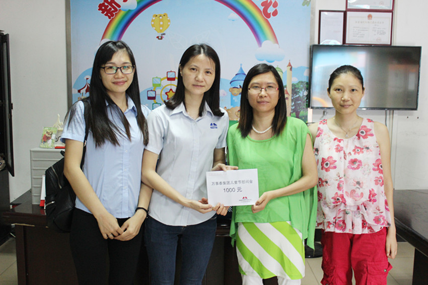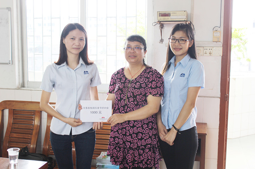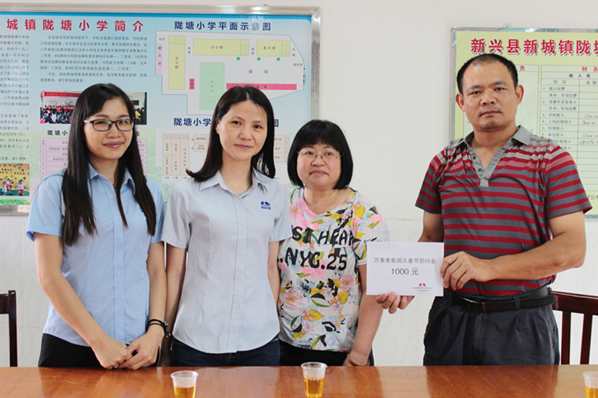 集團訊 時值六一兒童節(jié)到來之際,2016年5月27日下午,萬事泰集團工會、行政部以及企業(yè)文化部工作人員前往新興縣內(nèi)5所外來工子女就讀小學慰問,集團代表與孩子們開心的分享節(jié)日的快樂,送去慰問金,并與孩子們合影留念。