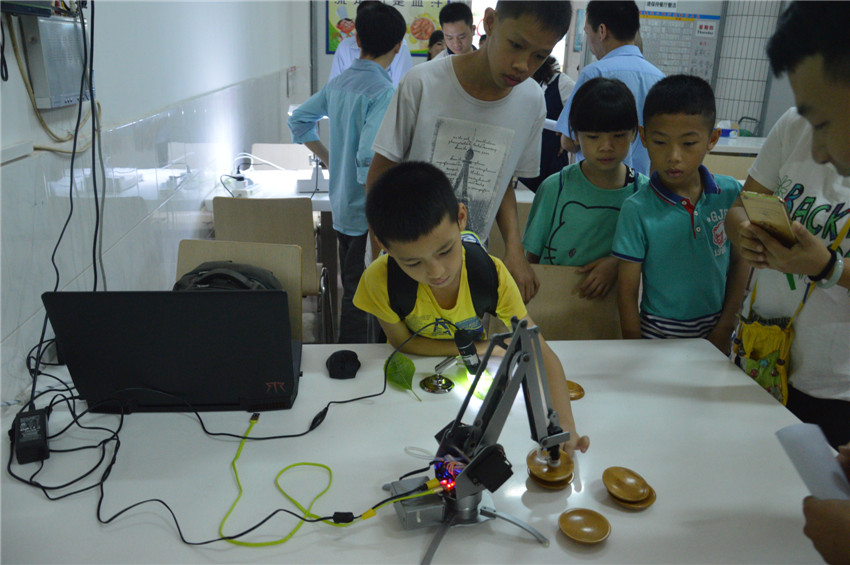 講座上現(xiàn)場展示了集團先進儀器uArm機械臂、500倍電子顯微鏡、wifi智能開關(guān)遠程操作家電設(shè)備等輕松趣味又貼近生活的小環(huán)節(jié),讓小朋友們可以通過先進的科學(xué)設(shè)備儀器和生活的有機結(jié)合,近距離感受科技改變生活的意義,培養(yǎng)科學(xué)創(chuàng)新的興趣,勇于思考、發(fā)問和表達,寓教于樂。