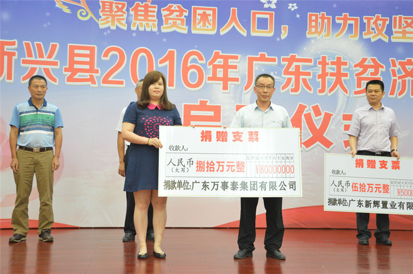 會上,現(xiàn)場企業(yè)認(rèn)捐善款901.7萬元,其中萬事泰集團(tuán)捐款80萬元。今年全縣通過“廣東扶貧濟(jì)困日”活動平臺籌集到的資金,將主要用于全縣精準(zhǔn)扶貧精準(zhǔn)脫貧任務(wù),幫扶全縣相對貧困村、貧困人口脫貧奔康。