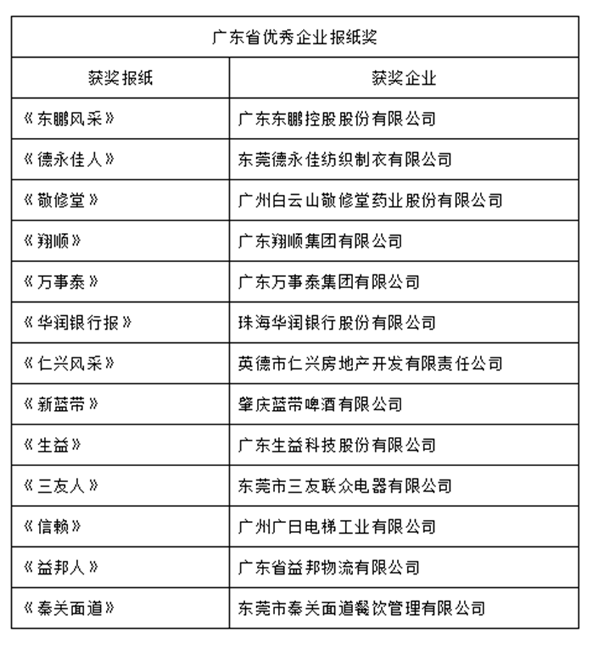 廣東省優(yōu)秀企業(yè)報(bào)紙獎(jiǎng)獲獎(jiǎng)名單。