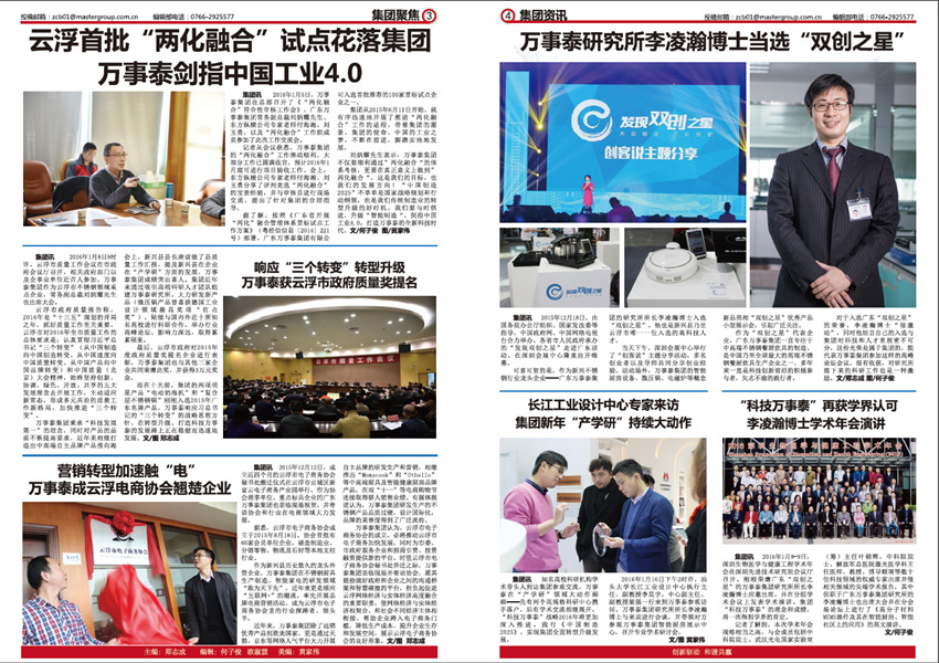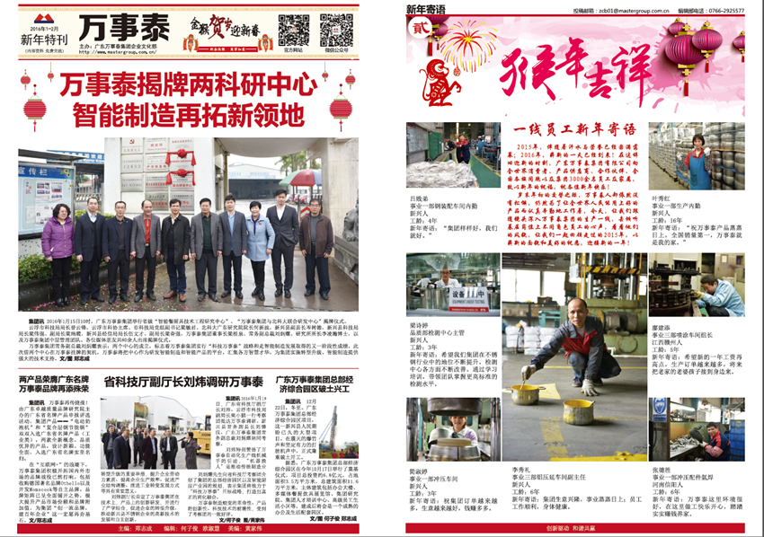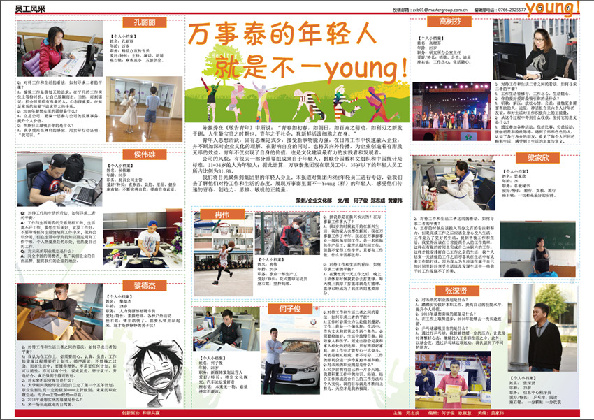 《萬(wàn)事泰》是廣東萬(wàn)事泰集團(tuán)的企業(yè)月報(bào),由集團(tuán)企業(yè)文化部負(fù)責(zé)編輯出版,在部門(mén)同事鄭志成、歐淑慧、何子俊、黃家偉、黎家良的協(xié)作努力下,在集團(tuán)領(lǐng)導(dǎo)、員工的鞭策和支持下,不斷將內(nèi)刊從選題策劃、欄目設(shè)置、稿件標(biāo)準(zhǔn)、版式設(shè)計(jì)上進(jìn)行升級(jí)改進(jìn),為廣大萬(wàn)事泰員工奉獻(xiàn)一份“從一線(xiàn)來(lái)、到一線(xiàn)去”的接地氣的內(nèi)刊報(bào)紙,建設(shè)成企業(yè)內(nèi)部資訊上傳下達(dá)的暢通平臺(tái),傳遞實(shí)用有趣、積極向上的資訊內(nèi)容和集團(tuán)理念,助力集團(tuán)的蓬勃發(fā)展。