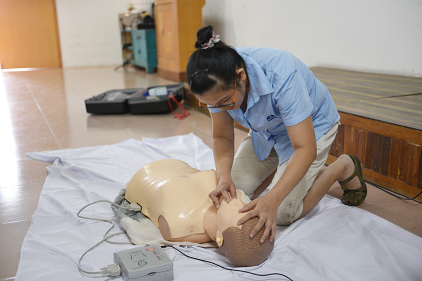 員工在積極練習(xí)急救技能