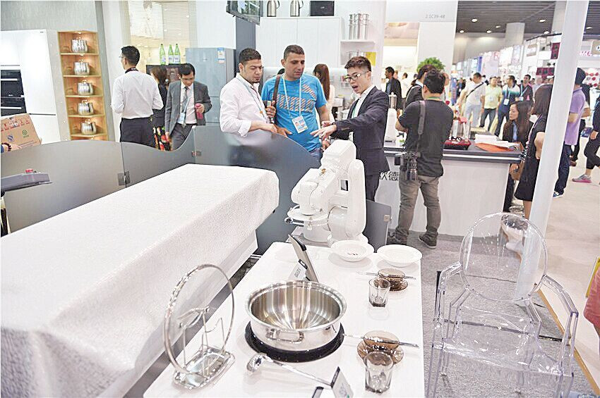 智能火鍋線在廣交會上吸引了不少采購商前來了解。