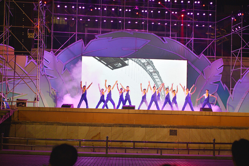 廣場內(nèi)燈光璀璨,歡樂的音樂聲此起彼伏,舞臺下座無虛席,場面熱鬧非凡。晚會以一支歡快而激揚的舞蹈拉開了序幕,歌唱家們美妙的歌聲吸引了臺下不少群眾一起和聲吟唱,一曲風靡全國的神曲《小蘋果》更是讓臺下小觀眾們手舞足蹈,還有相聲、魔術(shù)等精彩節(jié)目都引得臺下觀眾掌聲陣陣。