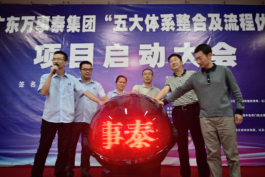 集團(tuán)訊 2016年10月19日,廣東萬(wàn)事泰集團(tuán)召開了“五大體系整合及流程優(yōu)化項(xiàng)目”啟動(dòng)大會(huì)。集團(tuán)常務(wù)副總裁、項(xiàng)目領(lǐng)導(dǎo)小組組長(zhǎng)劉炳耀,天儀顧問總經(jīng)理、項(xiàng)目咨詢組長(zhǎng)陳巖松,項(xiàng)目領(lǐng)導(dǎo)小組副組長(zhǎng)、體系辦主任葉樹娥,事業(yè)部總經(jīng)理、生產(chǎn)管理板塊負(fù)責(zé)人鐘木營(yíng)及體系管理組織各機(jī)構(gòu)板塊負(fù)責(zé)人、中層以上集團(tuán)領(lǐng)導(dǎo)參加了大會(huì)。會(huì)議由項(xiàng)目領(lǐng)導(dǎo)小組副組長(zhǎng)梁中興主持。