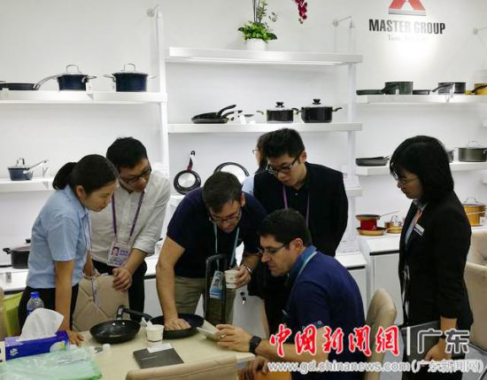 記者在廣交會(huì)上看到,膚色不同的國(guó)外采購(gòu)商對(duì)廣東萬(wàn)事泰集團(tuán)展區(qū)豐富的不銹鋼餐廚具產(chǎn)品頗感興趣,現(xiàn)場(chǎng)咨詢(xún)、下單者絡(luò)繹不絕。