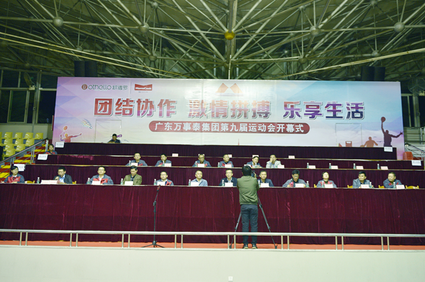 集團(tuán)訊 2016年12月3日晚上7時30分,廣東萬事泰集團(tuán)第九屆員工運動會在新興縣體育中心籃球館內(nèi)隆重開幕。集團(tuán)常務(wù)副總裁劉炳耀、集團(tuán)工會主席梁洪光、萬富投資公司總經(jīng)理梁炎泉、新興縣體育局局長梁紹林、以及集團(tuán)各部門負(fù)責(zé)人紛紛出席了這次盛會。