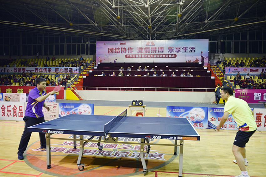 在絢爛奪目禮炮下,工作人員已經(jīng)布置好了乒乓球表演賽的場地,集團(tuán)乒乓球優(yōu)秀選手伍時煥與張深賢在此奉獻(xiàn)了一場精彩絕倫的比賽。乒乓球在空中旋轉(zhuǎn)著,揮擊著理想,汗水落地成花,像象征著萬事泰力爭上游的干勁。