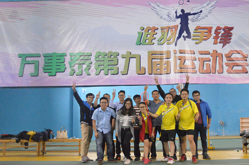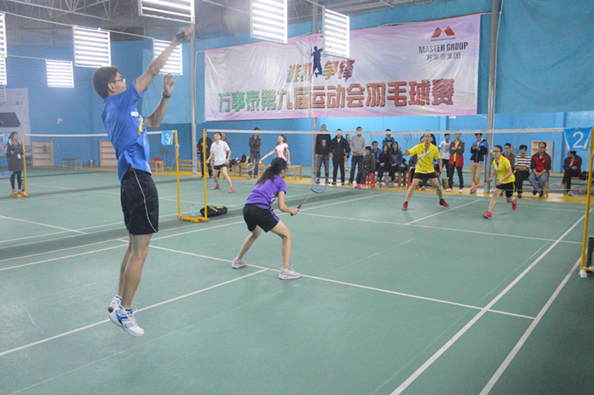 集團訊 2016年12月5日晚上7點30分,廣東萬事泰集團第九屆員工運動會——羽毛球比賽在新興縣力昇羽毛球館內拉開為期5天的激情角逐。來自各部門共66名選手參加了這次比賽,比賽設男子單打,女子單打,男女混雙共三個項目,比賽采用抽簽模式進入小組積分淘汰賽,最后勝出者為冠軍。