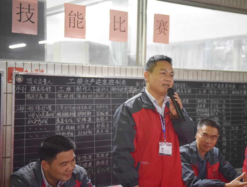本次大賽共有8名選手參加,分別有:高級技工余廣雄,鉗工陳健勇、劉金才、歐樹新、梁德果、歐國長、潘松林、歐國慶。本著公平、公正、公開的原則,8名選手通過抽簽方式?jīng)Q定出賽順序。由技術(shù)總監(jiān)黎健泉、孔萌,項(xiàng)目經(jīng)理劉克漢、陳子一、羅思聰、梁炎明,工藝技術(shù)科長蘇樹鎮(zhèn),以及工藝工程師陳樹清擔(dān)任評委。