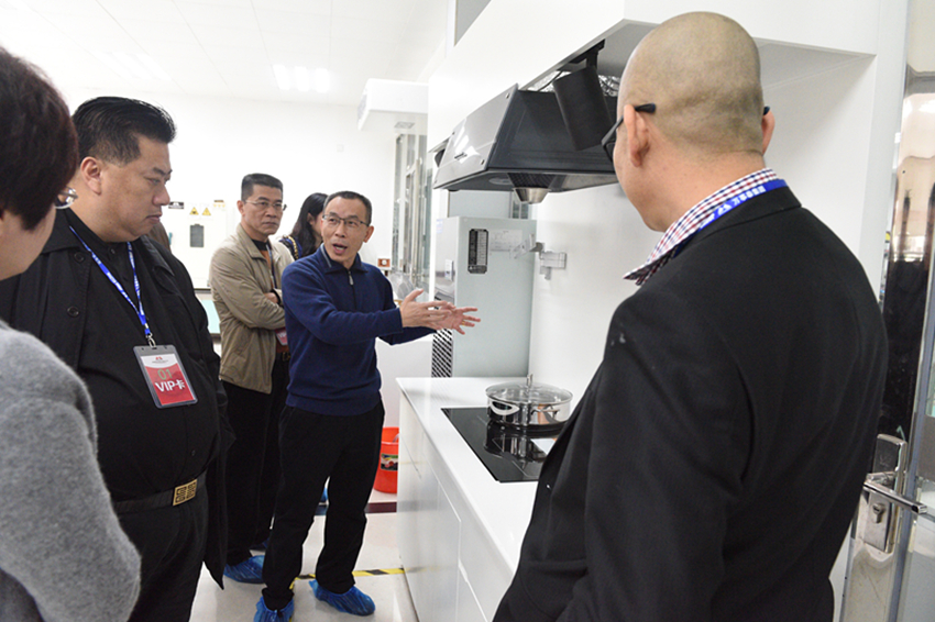 劉總給參訪團(tuán)介紹智能健康廚房的特色