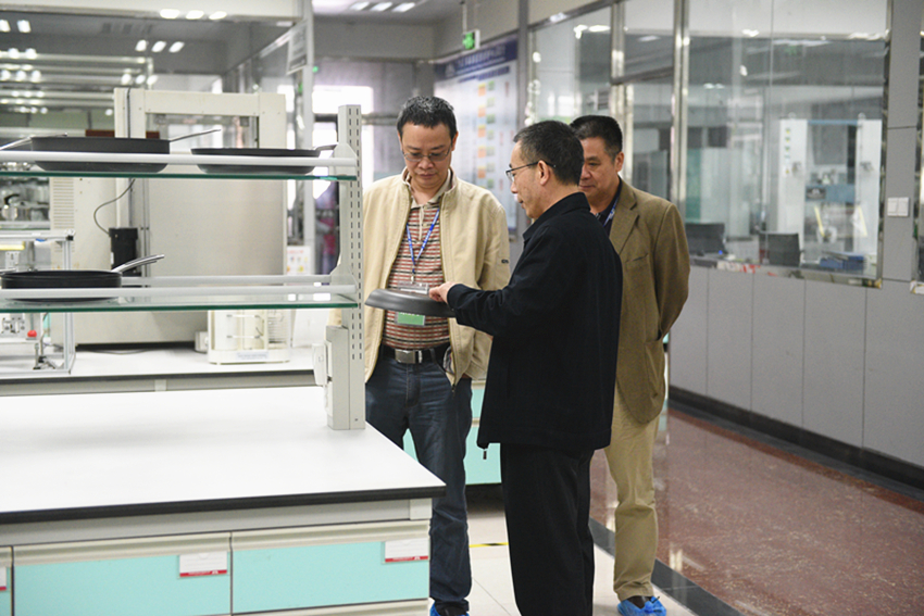 集團(tuán)劉總給調(diào)研團(tuán)講解檢測工序
