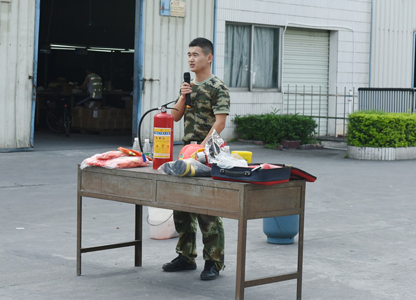 在演習(xí)的過程中,新興縣消防官兵針對火災(zāi)事故發(fā)生時的情況講解了各種滅火器材的性能、用途和使用方法,并實操演習(xí)了車間現(xiàn)場火災(zāi)撲救。隨后,全廠員工在疏散組的指揮下井然有序地按照規(guī)定疏散路線,迅速撤離了現(xiàn)場,到達(dá)指定地點。