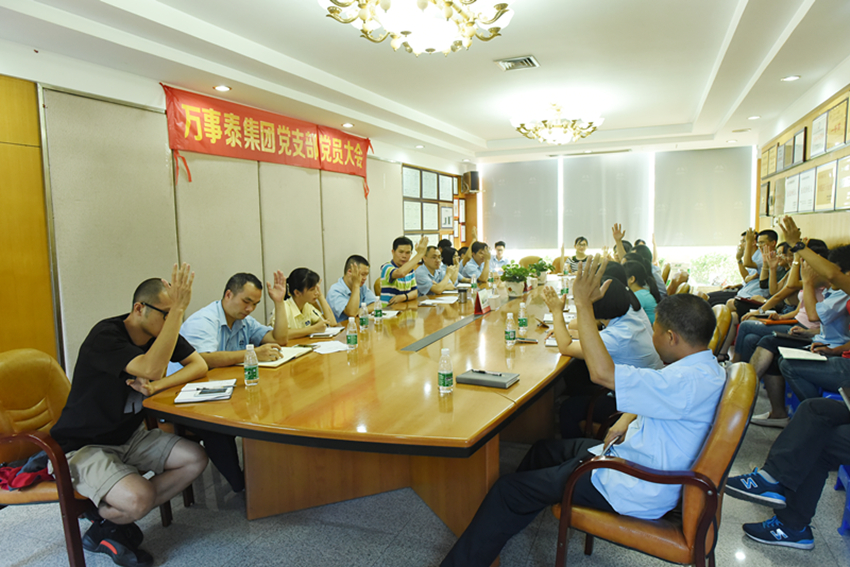 集團(tuán)訊 6月27日,2017年萬事泰集團(tuán)黨支部黨員大會在集團(tuán)一樓大會議室內(nèi)日常召開,全體黨員出席會議。