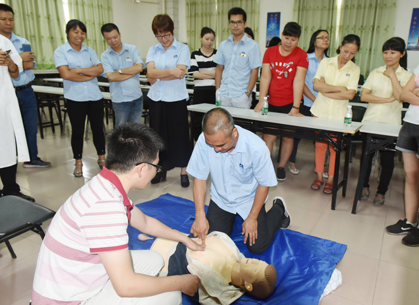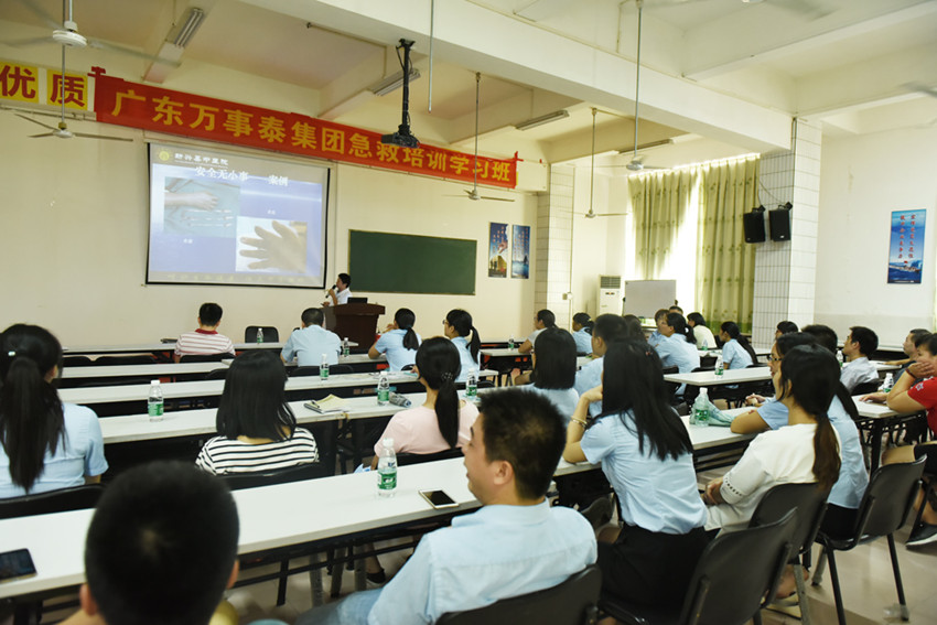 集團訊 9月14日下午,萬事泰集團貫徹“安全第一、預(yù)防為主、綜合治理”的健康、安全方針,特聯(lián)合新興縣中醫(yī)院在總部食堂三樓培訓(xùn)室開展企業(yè)急救培訓(xùn)班課程,集團各部門代表共50多人參加。