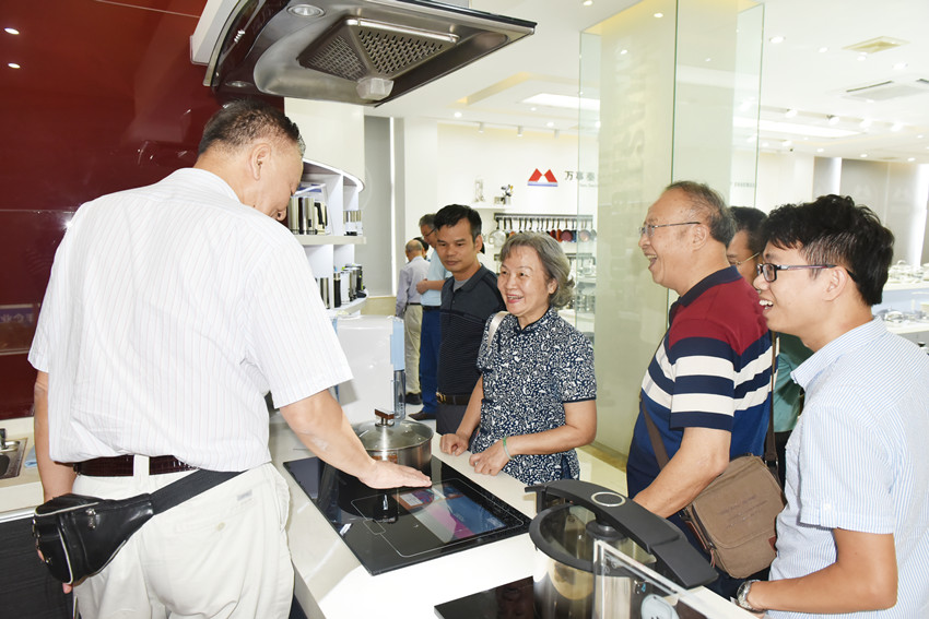 來(lái)訪專家一行首先參觀了萬(wàn)事泰自主研發(fā)的智能整體廚房,了解到傳感器和智能技術(shù)應(yīng)用領(lǐng)域?qū)Σ讳P鋼餐廚具行業(yè)轉(zhuǎn)型升級(jí)產(chǎn)生的創(chuàng)新意義。隨后在座談會(huì)上,陳永錦與專家組對(duì)集團(tuán)產(chǎn)品創(chuàng)新情況及人才引進(jìn)情況,展開(kāi)了熱烈的討論。
