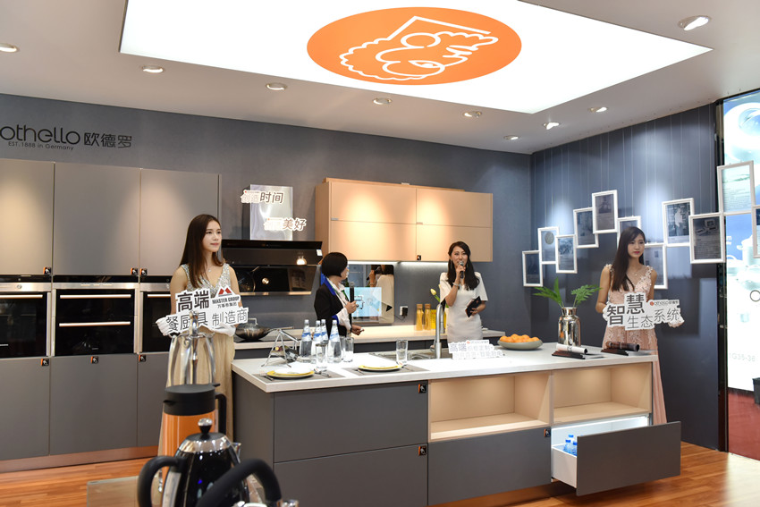 展位整體以高級(jí)灰為主色調(diào),以櫥柜系列、廚具系列、廚電系列展現(xiàn)做產(chǎn)品布局,打造出一個(gè)智能、環(huán)保、摩登的廚房智能生態(tài)系統(tǒng),在展位現(xiàn)場(chǎng),一位被萬事泰高端、顛覆的“全貌”所折服的客商發(fā)出感慨:“在上一屆廣交會(huì)上,我已經(jīng)對(duì)萬事泰othello歐德羅已經(jīng)有了初步的了解,最吸引我的有三點(diǎn):一是質(zhì)量好,二是設(shè)計(jì)好,三是品牌實(shí)力強(qiáng),很贊”!