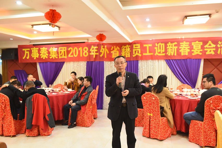 集團訊 新春佳節(jié)將至,2月10日晚,萬事泰舉辦了2018年外省籍員工迎新春宴會活動。萬事泰集團常務(wù)副總裁劉炳耀等集團領(lǐng)導(dǎo)出席活動,并與留在集團過年的外省籍員工及家屬共享團年飯。