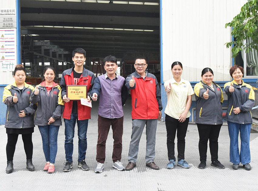 集團(tuán)訊 4月20日上午,廣東萬事泰集團(tuán)品質(zhì)部總經(jīng)理陳成武代表集團(tuán)向嘉事泰玻璃蓋車間頒發(fā)“質(zhì)量進(jìn)步獎(jiǎng)”牌匾, 以表彰嘉事泰玻璃蓋車間推動(dòng)集團(tuán)產(chǎn)品質(zhì)量作出的積極貢獻(xiàn),并鼓勵(lì)嘉事泰玻璃蓋車間在產(chǎn)品質(zhì)量上再創(chuàng)佳績。同時(shí),集團(tuán)希望其他部門能夠以此為榜樣,嚴(yán)格把關(guān)產(chǎn)品質(zhì)量,爭取產(chǎn)品質(zhì)量更勝一籌。