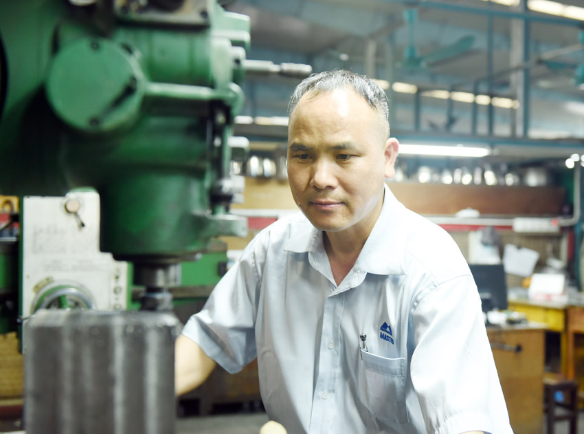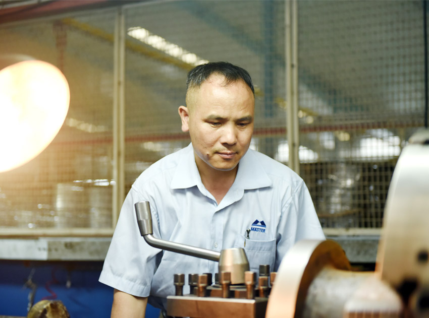 自1996年入行以來(lái),他就一直從事機(jī)械類相關(guān)工作。對(duì)他來(lái)說(shuō),工作的地方就是他第二個(gè)家,有時(shí)候?yàn)榱斯ぷ魃系氖虑椋B續(xù)工作30天不休息也不覺得累,反而覺得特別有成就感,越做越有沖勁。他印象最深刻的事情是在萬(wàn)事泰參與開發(fā)雙層奶煲產(chǎn)品,杯類產(chǎn)品,蘆筍煲拉伸模改良,把產(chǎn)品從無(wú)到有的模具設(shè)計(jì)制作過(guò)程,在整個(gè)生產(chǎn)研發(fā)過(guò)程中,他收獲了很多,也更加堅(jiān)定選擇不銹鋼行業(yè),加入萬(wàn)事泰的信念。日復(fù)一日打磨,他對(duì)不銹鋼制品的生產(chǎn)材料、物料性能,鋼料、材質(zhì)的加工性能、工藝特點(diǎn)以及測(cè)試要求、測(cè)試標(biāo)準(zhǔn)都是非常熟悉,能夠做到高質(zhì)高效完成工作。