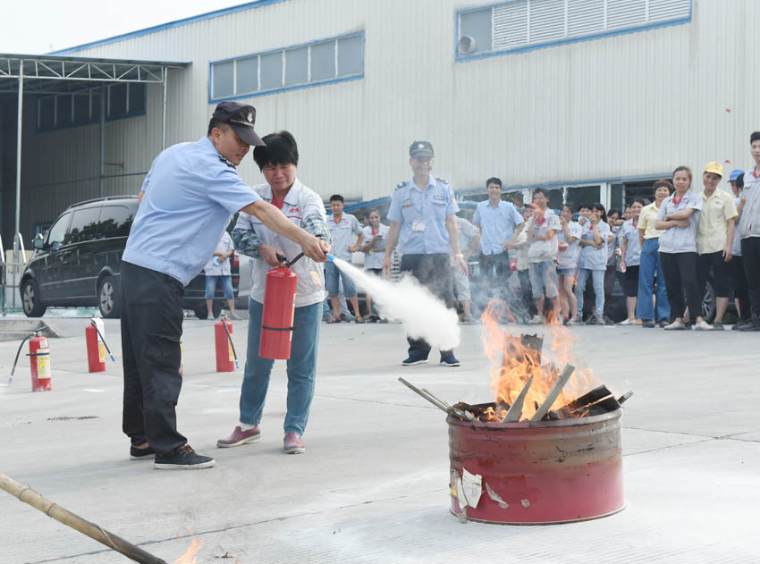 員工積極參與干粉滅火器滅火實踐操作體驗