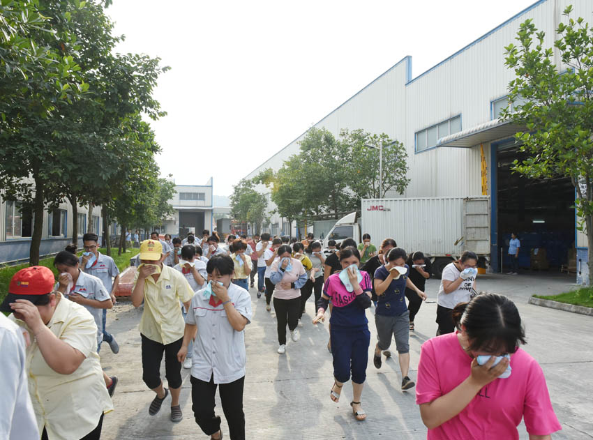 隨著應(yīng)急逃生演練開始,員工們迅速的撤離到安全地帶