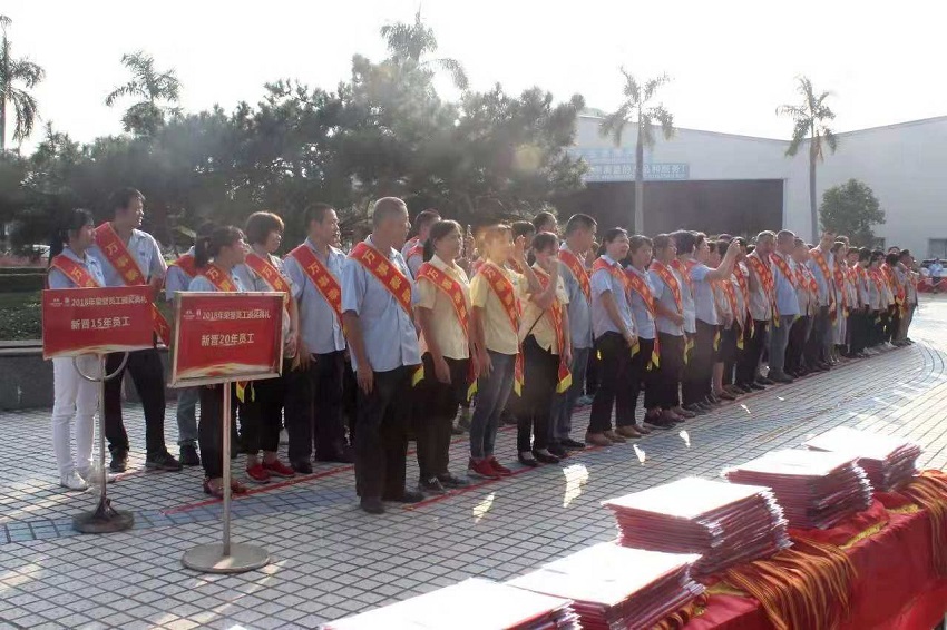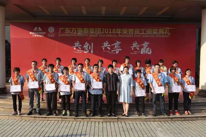 集團(tuán)訊 9月14日,以“共創(chuàng) 共享 共贏”為主題的廣東萬(wàn)事泰2018年榮譽(yù)員工頒獎(jiǎng)典禮在萬(wàn)事泰總部隆重舉辦,為106名新晉10年、15年、20年獲得“榮譽(yù)員工”光榮稱(chēng)號(hào)的員工頒發(fā)榮譽(yù)獎(jiǎng)牌和榮譽(yù)證書(shū)。萬(wàn)事泰董事長(zhǎng)梁桂泉、常務(wù)副總裁劉炳耀等集團(tuán)高層領(lǐng)導(dǎo)出席了本次典禮及晚宴。