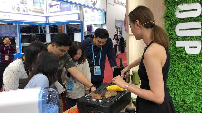 本次參展,電器公司重點(diǎn)推出燒烤類、磨刀類、奶泡機(jī)類和嬰兒用品類小家電產(chǎn)品。其中,燒烤類的無(wú)煙電烤盤一經(jīng)推出,就收到了大量客戶的詢價(jià)??蛻魝儗?duì)它產(chǎn)生了濃厚的興趣。這個(gè)電烤盤采用的是堆疊式設(shè)計(jì),使安裝更簡(jiǎn)易,清洗更方便。它通過(guò)內(nèi)置的風(fēng)扇及濾網(wǎng)能最大程度地消除燒烤時(shí)產(chǎn)生的油煙,適用于廚房、客廳、辦公室,甚至臥室等各種室內(nèi)環(huán)境,讓人們隨時(shí)隨地享受燒烤的樂(lè)趣,同時(shí)又能避免滿屋油煙的困擾。