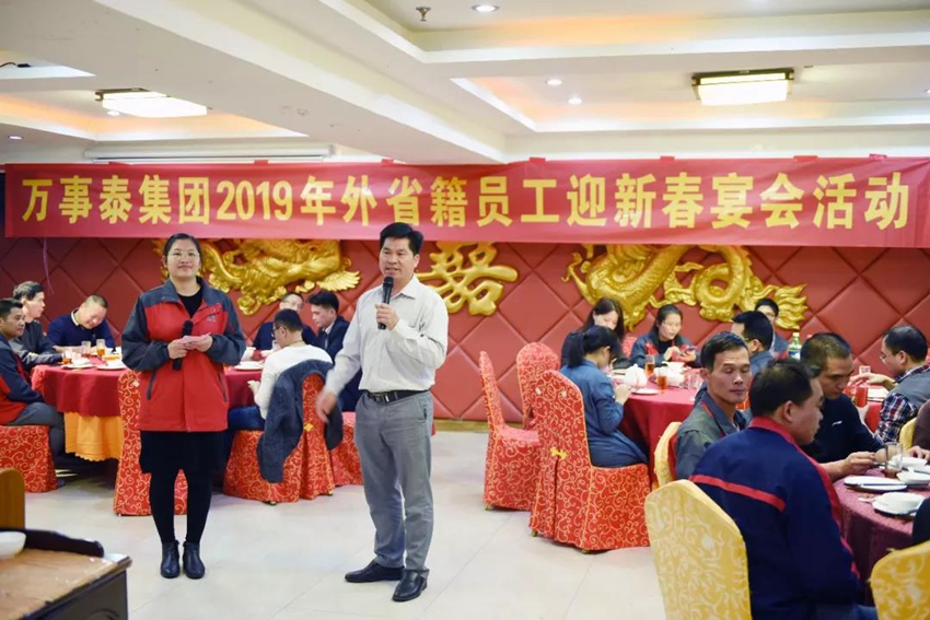 活動(dòng)現(xiàn)場(chǎng),大家圍坐在洋溢著充滿新春喜氣的餐桌旁共進(jìn)團(tuán)年晚餐。萬事泰工會(huì)主席梁洪光代表集團(tuán)向家人們送來新年祝福并說道,“大家來自祖國(guó)各地,一年來兢兢業(yè)業(yè)工作、勤勤奮奮干事,新春佳節(jié)之際,謹(jǐn)代表集團(tuán)對(duì)大家表示衷心地感謝。同時(shí)希望大家能在工作崗位上繼續(xù)努力,以廠為家,爭(zhēng)取在新興、在萬事泰安居樂業(yè)。”