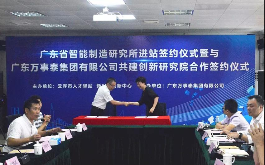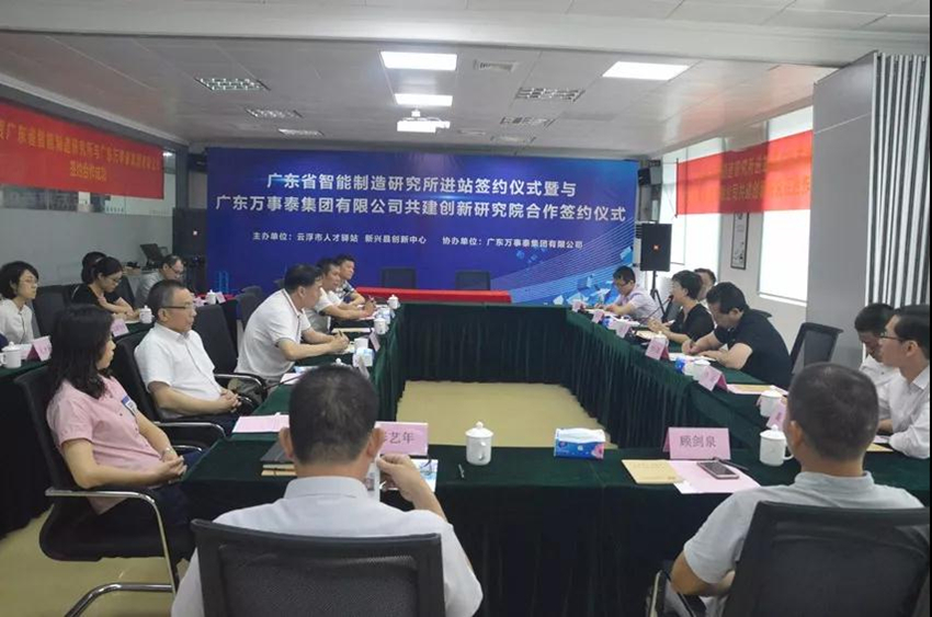 5月23日上午,由云浮市人才驛站和新興縣創(chuàng)新中心主辦,廣東萬事泰集團協(xié)辦的“廣東省智能制造研究所進站簽約儀式暨廣東萬事泰集團有限公司共建創(chuàng)新研究院合作簽約儀式”在新興縣創(chuàng)新中心隆重舉行。