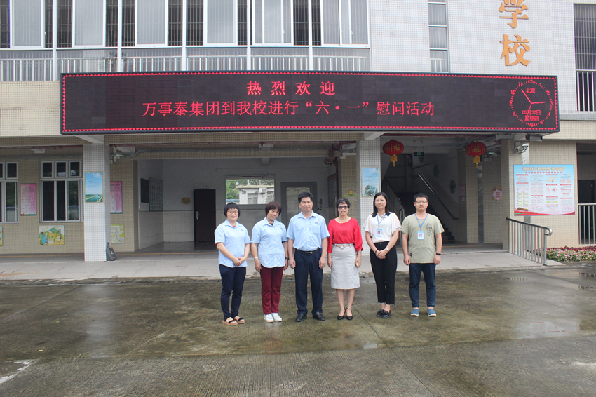 在5月30日下午,“六一”國(guó)際兒童節(jié)即將來臨之際,萬事泰集團(tuán)工會(huì)主席梁洪光、行政部蘇瑞萍、溫文翠一行分別來到新興縣特殊教育學(xué)校、王香地小學(xué)、鳳凰小學(xué)、啟智康復(fù)中心、隴塘小學(xué)開展慰問活動(dòng),給孩子們送上節(jié)日的問候與祝福。