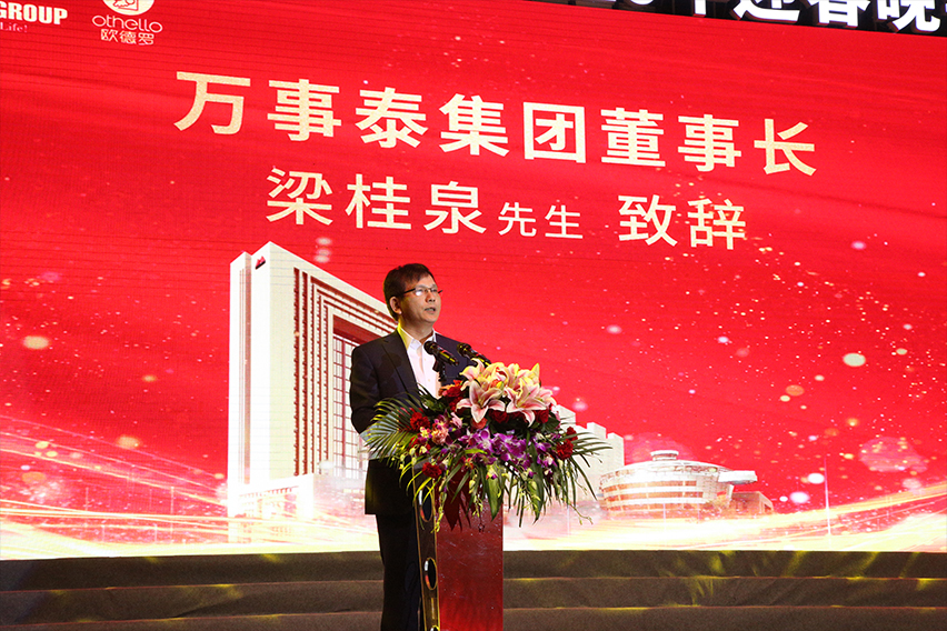 晚會(huì)致辭環(huán)節(jié),萬(wàn)事泰集團(tuán)董事長(zhǎng)梁桂泉先生向在過(guò)去一年里為公司發(fā)展付出辛勤勞動(dòng)的全體員工及其家屬致以最崇高的敬意,表達(dá)了最誠(chéng)摯、最美好的新年祝福。同時(shí)對(duì)未來(lái)一年的公司發(fā)展方向做出階段性規(guī)劃。梁董表示:2020年已經(jīng)開(kāi)局,讓我們立足更高站位,用我們的激情、智慧和勇氣,鉚足干勁,向著更高更遠(yuǎn)的目標(biāo)奮斗。