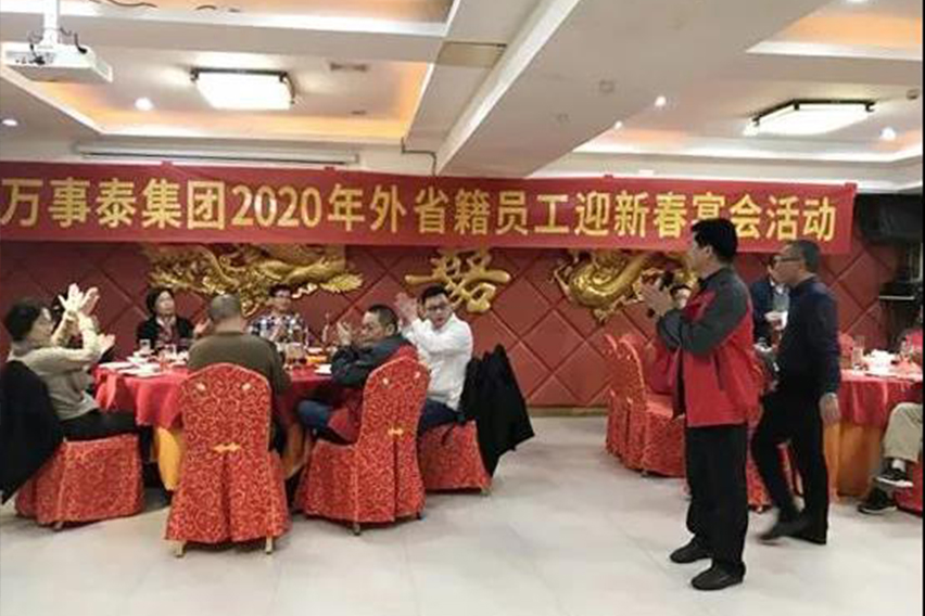晚宴上,工會主席梁洪光代表集團(tuán)公司作了講話,并向全體外來員工致以節(jié)日的問候和深深的祝福。他說:“在新春佳節(jié)來臨之際,希望大家把萬事泰當(dāng)作是自己的家,安安心心、高高興興在萬事泰過大年。”他還提到,“過去的一年有大家的努力,集團(tuán)在困境中能突破困難,迎難以上,取得了好成績,集團(tuán)非常感謝你們!”