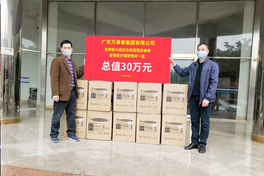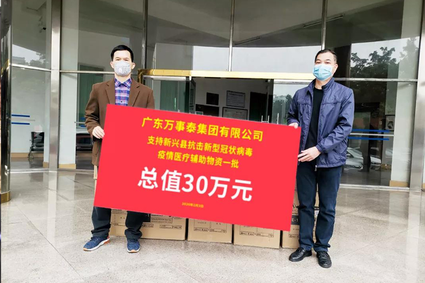 2月3日,萬事泰集團向新興縣人民政府捐贈了價值30萬的防疫物資一批。另還向縣不銹鋼商會捐資5萬元,用于支援政府相關防疫單位購置防疫所需物資。自戰(zhàn)“疫”打響以來,萬事泰在做好自我防控的同時,積極踐行社會責任,詮釋企業(yè)擔當,著力落實捐贈事宜,力爭為打贏這場防疫攻堅戰(zhàn)貢獻自己的一份力量。