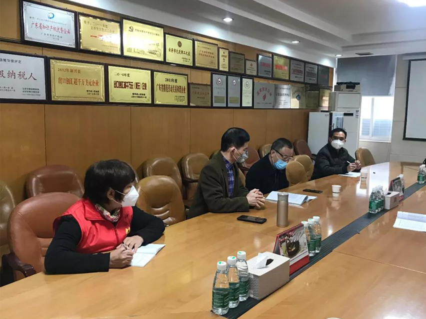 集團(tuán)訊 2月3日上午,縣人大主任陳就慶、縣工信局局長(zhǎng)黃志活等一行到我司巡查新型肺炎病毒疫情防控工作,集團(tuán)常務(wù)總裁劉炳耀、行政部經(jīng)理陳永錦接待并向他們?cè)敿?xì)匯報(bào)了集團(tuán)防控工作情況。
