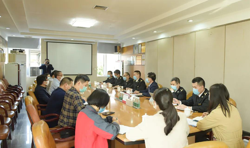集團訊 3月10日,云浮海關(guān)副關(guān)長林慶騰,羅定海關(guān)關(guān)長許彥華、陳曦,云浮市商務(wù)局副局長劉知靈等領(lǐng)導(dǎo)一行到我司就企業(yè)復(fù)工復(fù)產(chǎn)工作進行調(diào)研,聽取企業(yè)需求,幫助企業(yè)順利復(fù)工復(fù)產(chǎn)。萬事泰集團董事長梁桂泉、常務(wù)副總裁劉炳耀、董秘辦董秘楊松、總裁辦主任梁賢武、業(yè)務(wù)發(fā)展部經(jīng)理李麗娥、行政部經(jīng)理陳永錦等集團領(lǐng)導(dǎo)參加了調(diào)研。