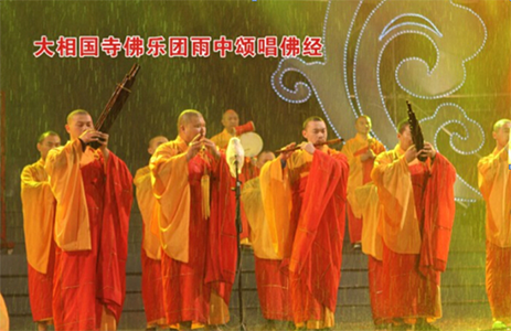 此次晚會總共演出包括河南大相國寺佛樂團帶來的《佛經(jīng)頌唱一一朱云飛片段》、著名歌 手容中爾甲演唱的《祈禱》《神奇的九寨》、著名梵音天后薩頂頂演唱的《萬物生》《雀神》 等十三個節(jié)目。雖然晚會現(xiàn)場下著雨,但觀眾的熱情擋不住。大相國寺的法師們帶來的演奏曲風悠揚、感人肺腑,贏得觀眾歡呼;云浮市快樂之聲合唱團表演的《六袓壇經(jīng)》低音祥和、高音穩(wěn)健,暸亮的嗓音絲毫不受大雨的影響;著名藏族歌手容中爾甲帶來《祈禱》和膾炙人口的《神奇的九寨》《高原紅》,高亢的嗓音贏得陣陣掌聲;薩頂頂?shù)某鰣鰹橥頃鎏砹藷崃业臍夥眨度f物生》《雀神》《自由行走的花》三首名曲激起觀眾的熱情,將晚會推向了高潮;華南師范大學合唱團的合唱《天際和聲》《等》以及著名歌手旺姆演唱的《天籟之爰》精彩紛呈。