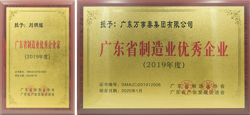 集團訊 由廣東省產(chǎn)業(yè)發(fā)展促進會、廣東省制造業(yè)協(xié)會組織開展的廣東省制造業(yè)“優(yōu)秀企業(yè)及企業(yè)家”的評選活動,廣東萬事泰集團榮獲“廣東省制造業(yè)優(yōu)秀企業(yè)”省級稱號、集團常務副總裁劉炳耀獲得“廣東省制造業(yè)優(yōu)秀企業(yè)家”稱號。
