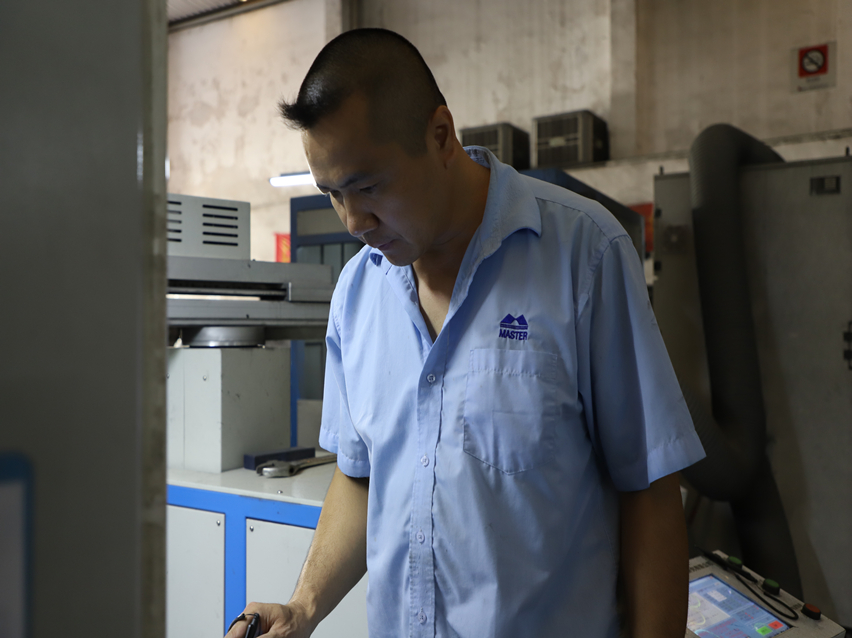 加入萬事泰時,他只是一名略懂機(jī)修的青年,如今成長為車間內(nèi)能熟練操作所有工序的“老師傅”。不少“徒弟”在他的教導(dǎo)下在各自崗位上嶄露頭角,成為技術(shù)能手?!笆谌艘贼~不如授之以漁”在蘇仲良看來,新入職的員工要熟練掌握生產(chǎn)流程和生產(chǎn)工藝的技術(shù)及經(jīng)驗,踏實學(xué)藝,盡職工作。他的一名徒弟說道:“第一次接觸高科技技術(shù)設(shè)備,不知從何下手,在蘇主任不厭其煩的教導(dǎo)下,我開始上手操作,技術(shù)也磨練得愈發(fā)純熟,真的很感謝他!”“方法教會了,但他日后能做到哪個水平,要看他自己的創(chuàng)新能力,如今制造業(yè)發(fā)展迅猛,機(jī)器設(shè)備不斷創(chuàng)新,我們只有不停的學(xué)習(xí)才跟得上時代的步伐。”蘇仲良感慨到。